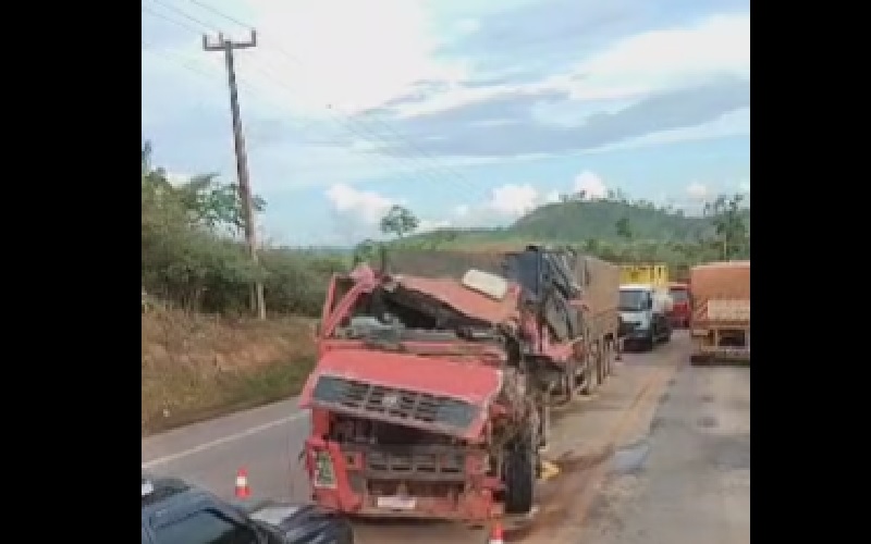 Motorista perde controle da direção e sai da pista e atingi cabine de caminhão e motorista morre na BR 163, no Pará