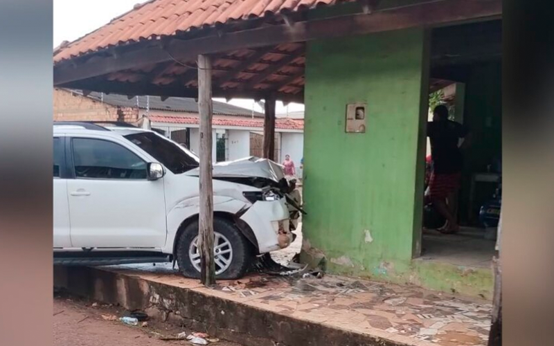 Caminhonete atinge estabelecimento após colisão com outro veículo, em Itaituba
