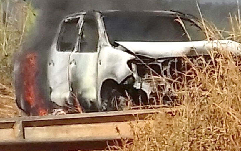 Caminhonete bate em poste e pega fogo no Nortão do MT.