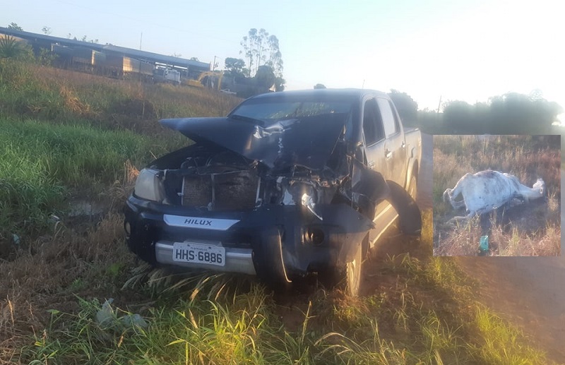 Conforme informações repassadas ao Jornal Folha do Progresso, a caminhonete modelo Toyota Hilux de cor preta, conduzida por Antonio José de Moraes (Bicudo), seguia sentido Alvorada da Amazônia quando houve a colisão. O condutor de 56 anos contou que o animal saiu da margem da rodovia e entrou na pista, o veículo acertou e cheio o animal. Com impacto o animal morreu no local , a camioneta ficou com a frente destruída, os airbag acionaram ajudaram a evitar ferimentos.