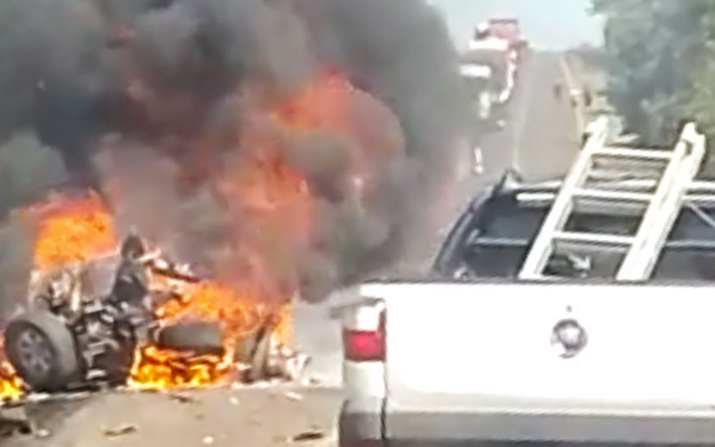 Segundo a PRF, todas as vítimas fatais estavam na caminhonete que acabou pegando fogo com o violento impacto.