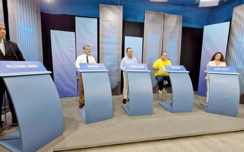 Os candidatos à Prefeitura de Santarém, oeste do Pará, participaram, na noite desta quinta-feira (3), de um debate promovido pela TV Tapajós. Estiveram presentes todos os cinco candidatos : Delegado Jardel (Solidariedade), Hugo Diniz (PSDB), Izabel Sales (PSOL), JK do Povão (PL) e Zé Maria Tapajós (MDB). Mediado pela jornalista da Globo Brasília, Cláudia Bomtempo, o encontro foi marcado por apresentação de propostas e trocas de acusações. (Saiba mais abaixo)