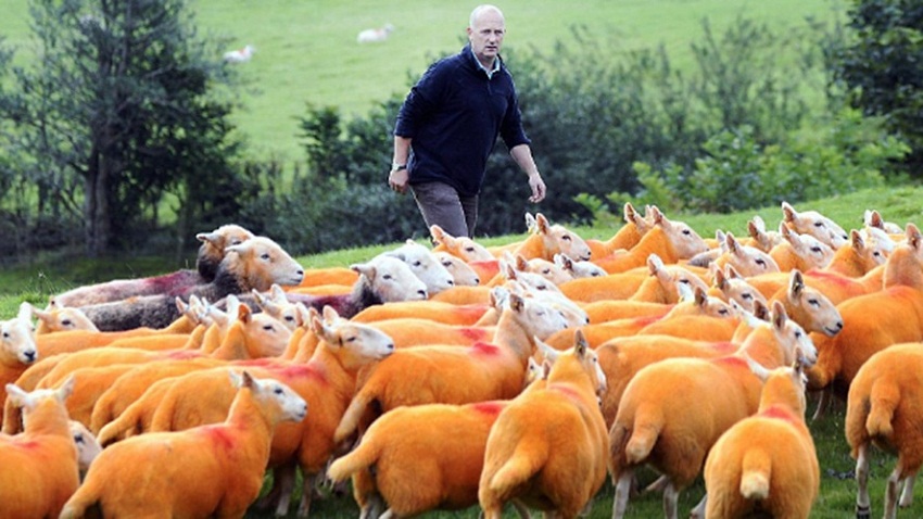 Muitos fazendeiros do noroeste da Inglaterra são frequentemente alvos de ladrões que surrupiam suas ovelhas. Por causa destes constantes furtos, Pip Simpson tomou uma medida drástica e inusitada. O fazendeiro decidiu pintar todo o seu rebanho de 800 ovelhas de laranja.