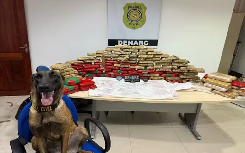 Aproximadamente 180 kg de drogas foram apreendidos na comunidade de Ajarapema, no município de Cametá, nordeste do Pará, na quarta-feira (30). O cão farejador “Kyra” foi utilizado nas buscas. O animal foi capaz de indicar o local exato em que os entorpecentes foram estocados, em um terreno próximo ao endereço investigado.