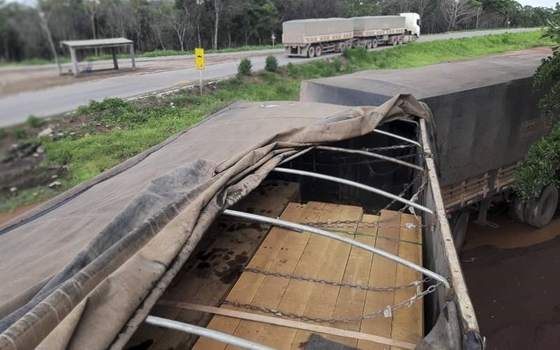 Caminhão estava com 10 metros³ de madeira da espécie cumaru serrada e sem documentos. Motorista tentou burlar fiscalização simulando que veículo estava vazio.