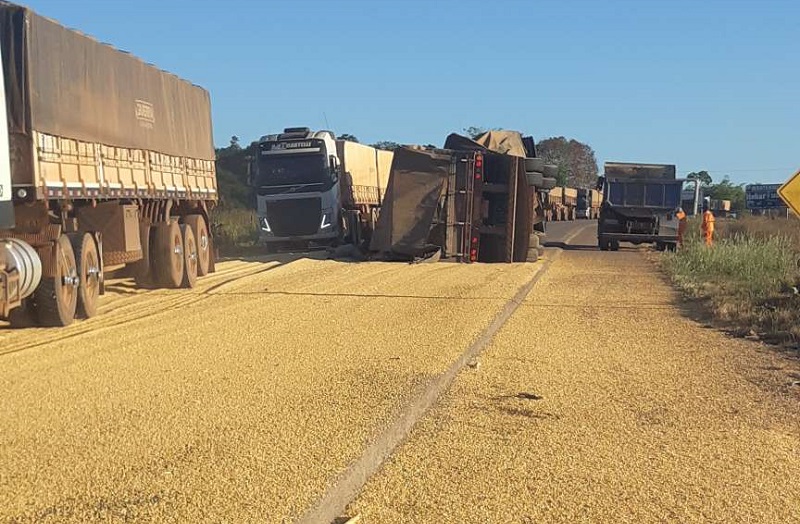 Conforme informações coletada pela reportagem do Jornal Folha do Progresso, no local , o veículo carregado de milho e seguia pela rodovia quando um motoqueiro (não identificado) invadiu a pista contraria, o motorista da carreta desviou para não colidir ao voltar para rodovia um dos bi trem tombou.