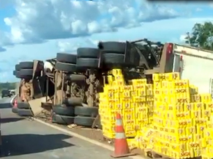 O veículo transportava uma carga de cerveja (em latas) e seguia sentido norte quando ocorreu o tombamento na lateral da via – já no acostamento. Algumas pessoas que passavam pelo local após o acidente aproveitaram para saquear parte do produto.