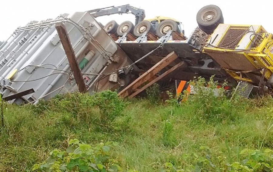 (fotos: divulgação) – Uma carreta, que transportava um dos transformadores da Usina São Manoel, tombou, esta tarde, na rodovia Gerson Serafim, próximo a balsa do rio Teles Pires, em Alta Floresta. A informação foi confirmada, ao Só Notícias, pela assessoria da empresa responsável pelo empreendimento, que, no entanto, não repassou outros detalhes sobre o acidente.