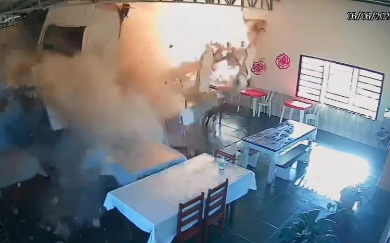Imagens do local mostram a comerciante correndo para se proteger segundos antes de o veículo atingir a parede do restaurante. Apesar do impacto, ninguém ficou ferido, incluindo os dois motoristas envolvidos na colisão.