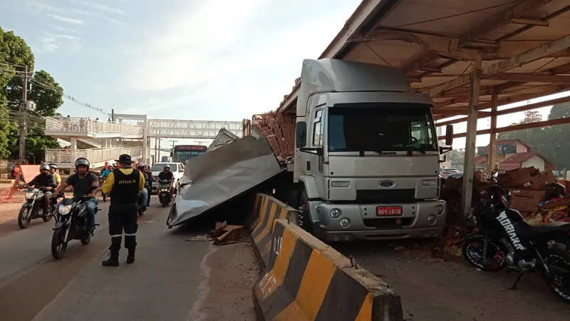 Uma carreta ficou ‘prensada’ no teto de uma estação do BRT Metropolitano, no km 6 da BR-316, em Ananindeua, na Grande Belém, nesta sexta-feira (1º). Não houve registro de feridos.