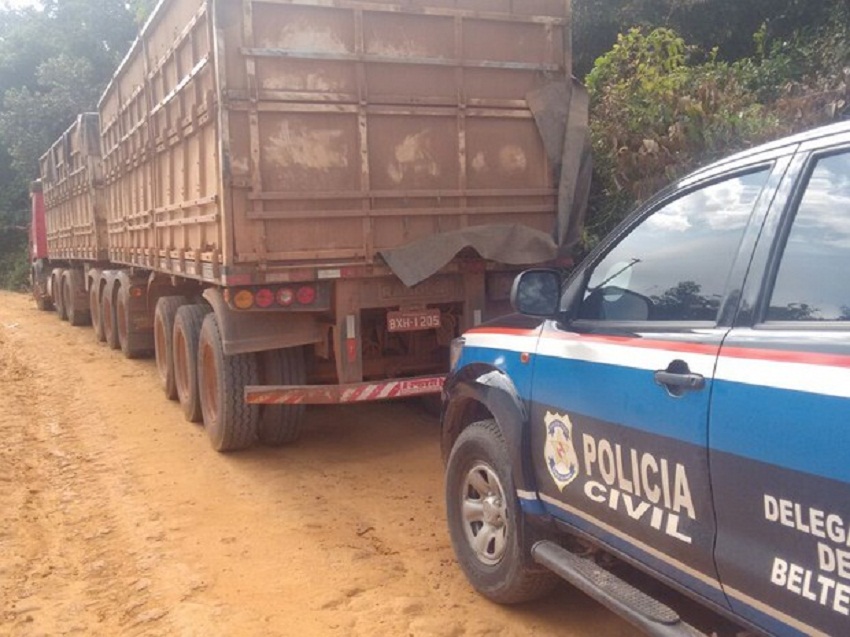 Uma carreta que havia sido roubada em Trairão foi recuperada pela Polícia Civil no KM 150 da rodovia federal BR-163, no município de Belterra, no oeste do Pará na quinta-feira (21). O veículo foi encontrado abandonado sem as 51 toneladas de milho que transportava quando foi levado pelos criminosos. Segundo informações da empresa repassadas à polícia, a carga estava avaliada em R$ 50 mil.
