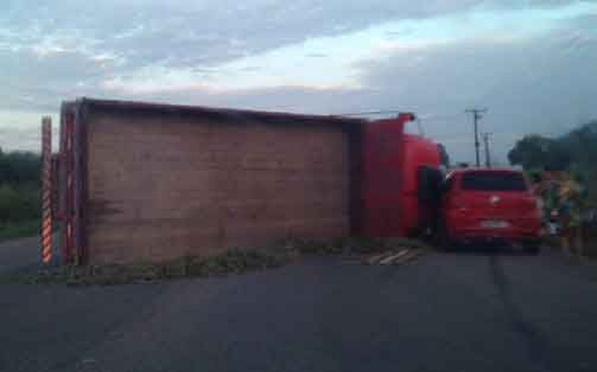 Carreta tomba e bate em três carros na rodovia BR-316.