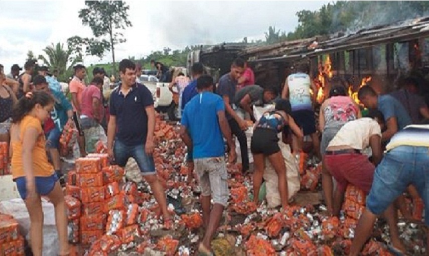 As imagens recebidas na redação do Jornal Folha do Progresso é possível ver o caminhão em chamas – ele foi destruído pelo fogo – e populares ( moradores próximos do local do acidente ) furtando a carga de cerveja.