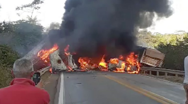 Carretas e veicíulos pegam fogo em colisão na BR-163, dois motoristas morreram carbonizados