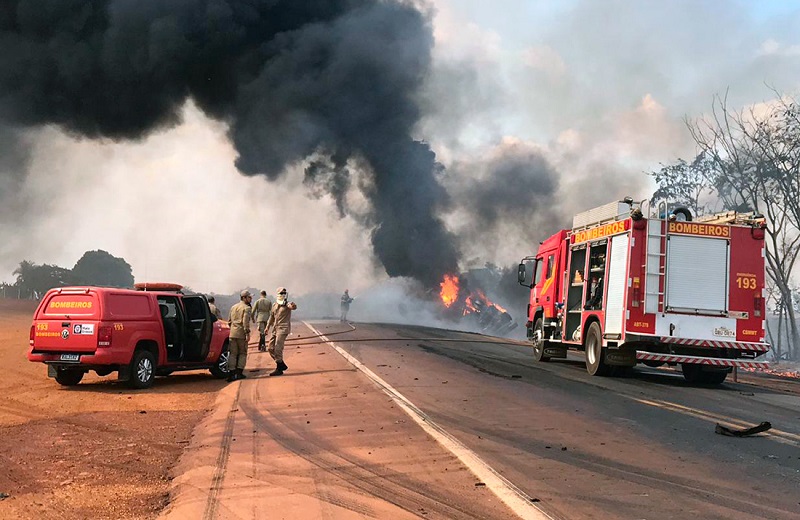 Carretas pegam fogo em colisão com caminhonete no Nortão; 2 mortos e BR-163 interditada