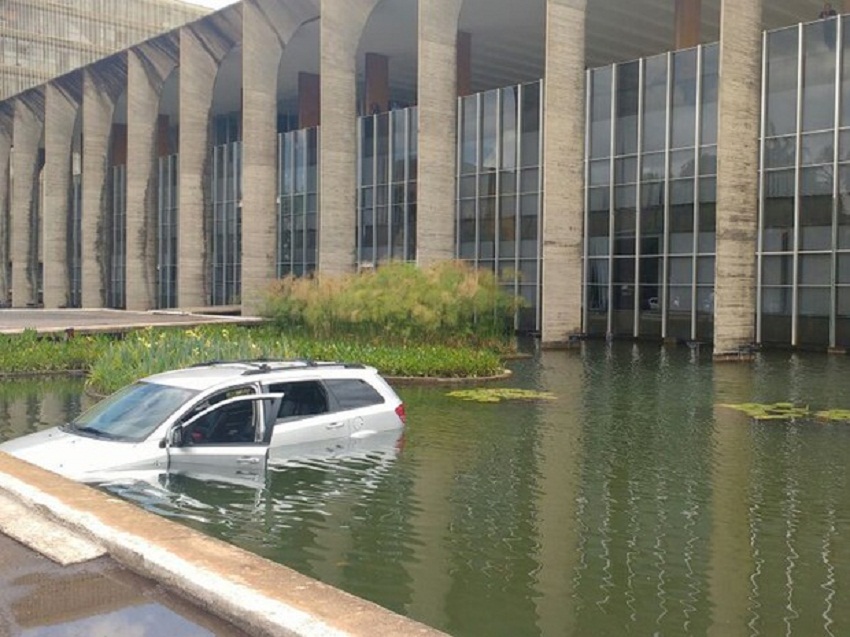 Um carro caiu no espelho d’água do Palácio do Itamaraty no início da tarde desta terça-feira (11). De acordo com o Corpo de Bombeiros, o motorista passou mal ao volante, perdeu o controle e foi parar dentro do espelho, que tem cerca de um metro de profundidade. A água ficou na altura do volante. Os objetos pessoais ficaram flutuando dentro do carro, que deverá ser guinchado pelo condutor.