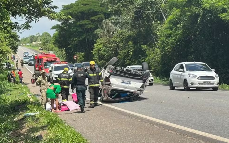 Carro capota após se chocar com outro veículo no nordeste do Pará