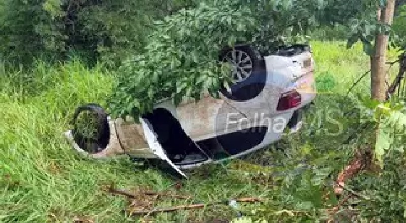 Veículo onde estava a deputada parou com as rodas para cima. (Foto: Folha MS)