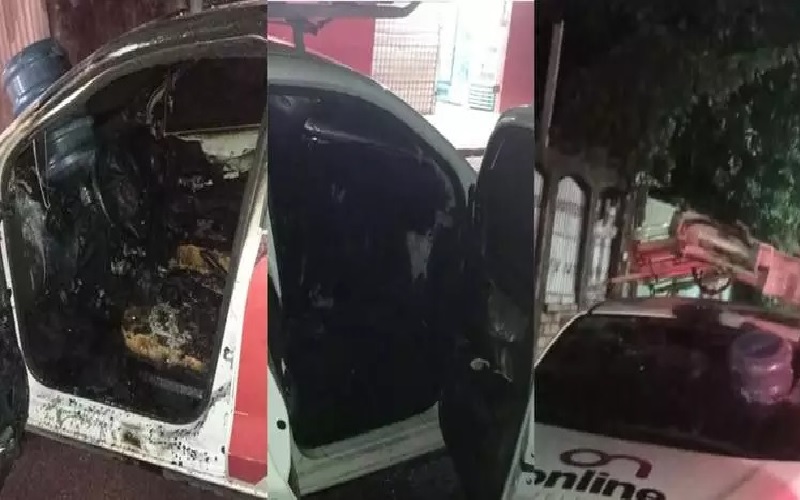 (Foto: Reprodução) – Segundo a Polícia Militar, dois homens em uma motocicleta abordaram o automóvel e atearam fogo nele