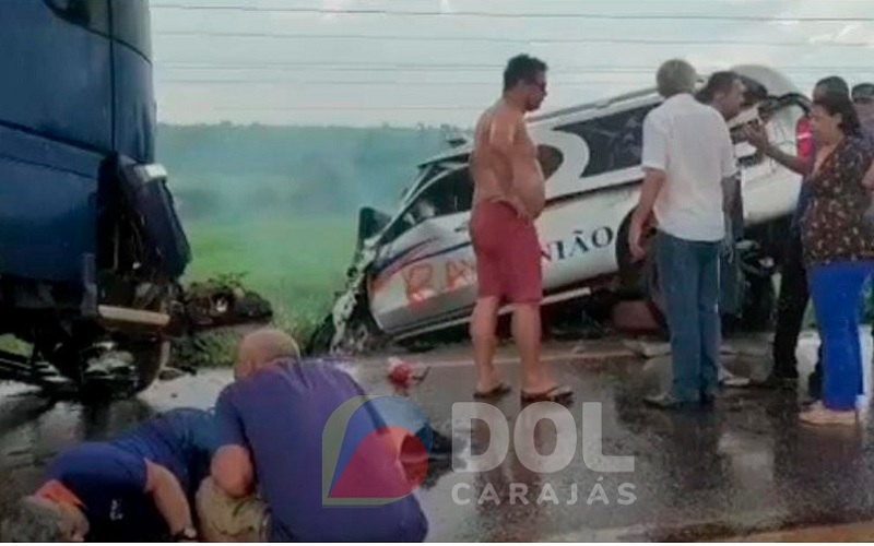 O veículo pertencente a uma empresa funerária instalada na cidade de Redenção, bateu de frente com uma carreta que viajava no sentido Redenção à cidade de Rio Maria.