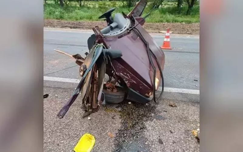 Foto: Reprodução | O impacto foi tão violento que o carro se despedaçou, partindo ao meio.