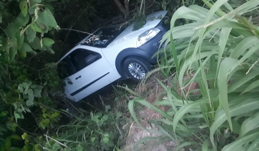 O veiculo ficou escondido dentro da vegetação, teve pouco danos [ na porta e na lateral da carroceria], uma arvore da vegetação segurou o veiculo, não houve falha mecânica.