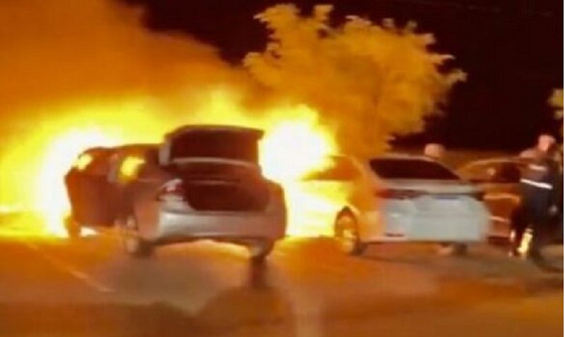 Populares relataram que as chamas começaram no Honda Civic e depois se espalhou para o Corolla. Por pouco, um terceiro veículo também não foi atingido.