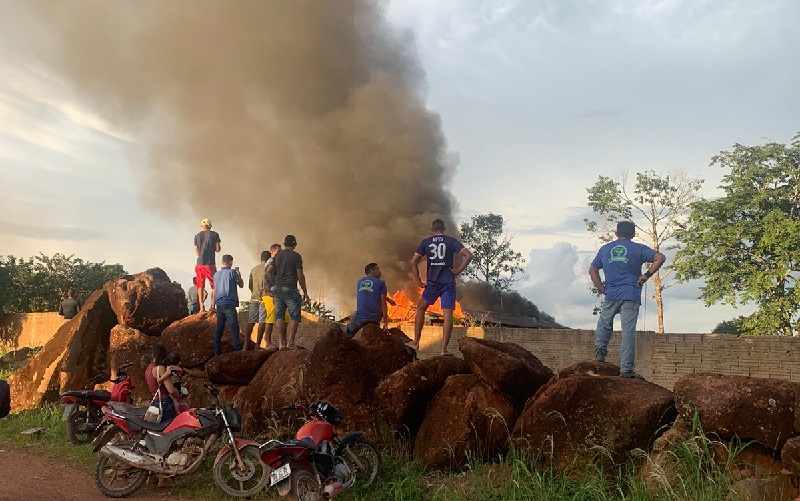 Populares ajudaram a conter o fogo, mas a residência ficou completamente destruída. O incêndio começou por volta das 18h e rapidamente avançou por toda a casa.