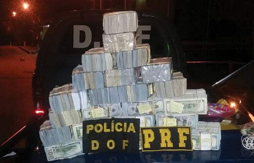 A PRF (Polícia Rodoviária Federal) e o Dof (Departamento de Operação de Fronteira) apreenderam em torno US$ 2 milhões durante um bloqueio da Operação “Corumbá Segura II” no KM 772 da BR-262 em Corumbá, na noite deste sábado (09). Covertido em reais, o valor gira em torno de R$ 6,5 milhões. As fotos dos dois já foram divulgadas porém suas identidades ainda não foram informadas.