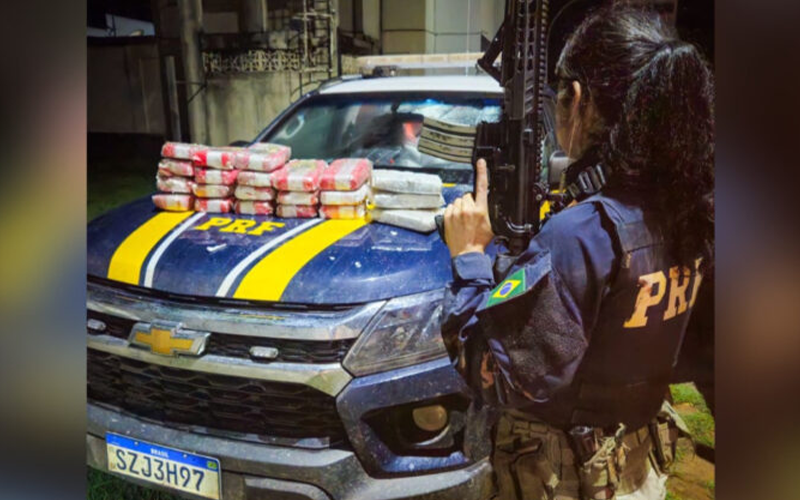Diante da atitude suspeita, os policiais decidiram abordar o veículo, que era ocupado por um casal e duas crianças. Durante a conversa inicial, os ocupantes apresentaram comportamento nervoso e respostas desconexas, o que motivou uma fiscalização mais detalhada no automóvel. Na vistoria, foram encontrados 23,5 kg de substância semelhante à pasta base de cocaína e 3,175 kg de maconha.