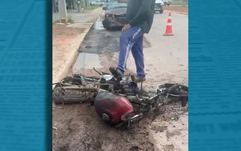 Casal fica ferido após motocicleta ser atingida por carro e pegar fogo em Novo Progresso