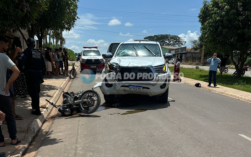 Foto: Reprodução | Na manhã desta quarta-feira 1 de janeiro de 2025, um acidente grave envolvendo uma motocicleta e uma caminhonete Hilux foi registrado na Avenida Brasil, no cruzamento com a Rua São Domingos, em Novo Progresso.
