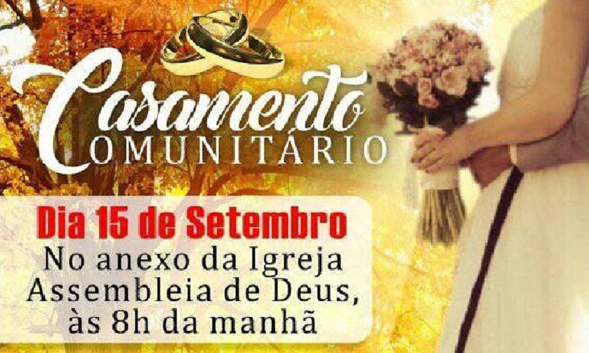 O Casamento Comunitário dia 15 de setembro, será no anexo da igreja Assembléia de Deus no bairro Bela Vista em Novo Progresso.