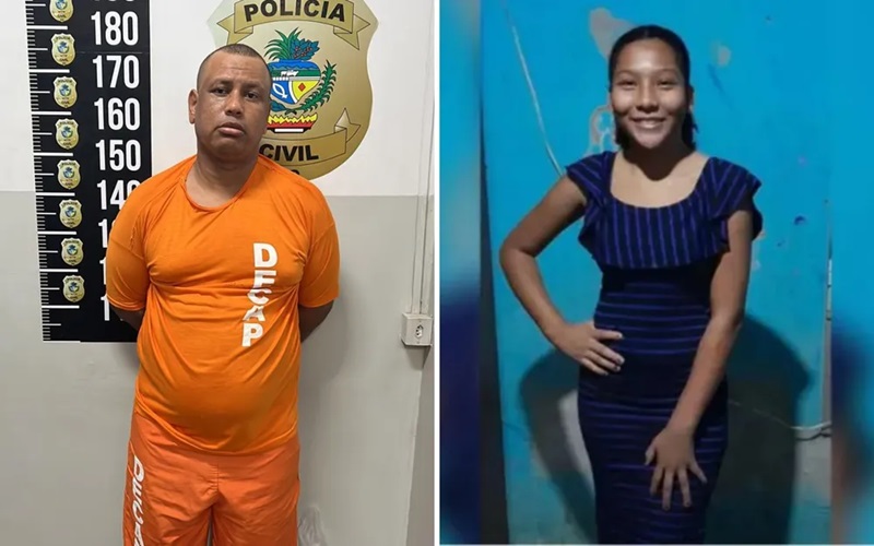 Janildo da Silva Magalhães (lado esquerdo) é suspeito de matar e estuprar a estudante Amélia Vitória (lado direito), de 14 anos, em Aparecida de Goiânia, Goiás — Foto: Divulgação/Polícia Civil