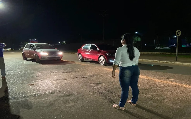 Jussara Nadiny participou de reprodução simulada do atropelamento de Líbia Tavares na avenida Sérgio Henn — Foto: Henrique Pimentel /TV Tapajós