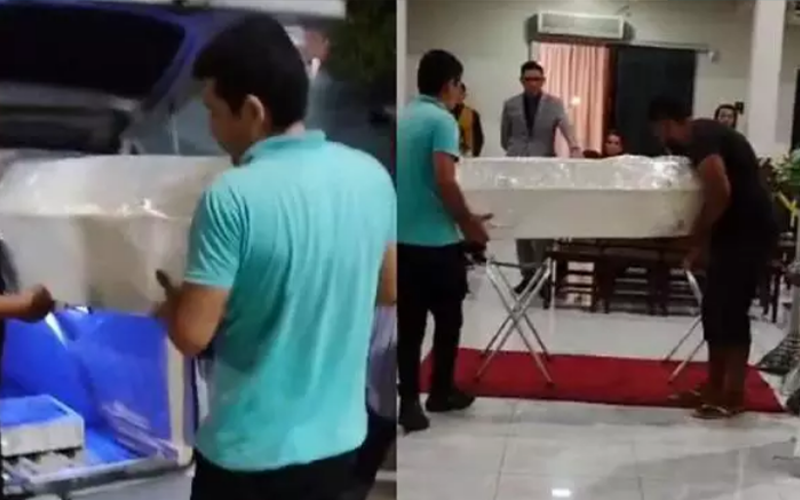 A imagem mostra o velório de Sara Raabe Silva do Nascimento, de 5 anos, realizado na noite de domingo (22/9), em uma igreja evangélica localizada no centro de Altamira, sudoeste do Pará. (Foto: Reprodução | Redes sociais)