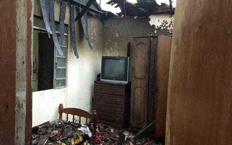 O fogo atingiu dois cômodos da casa e as chamas destruiram parte do telhado do imóvel.