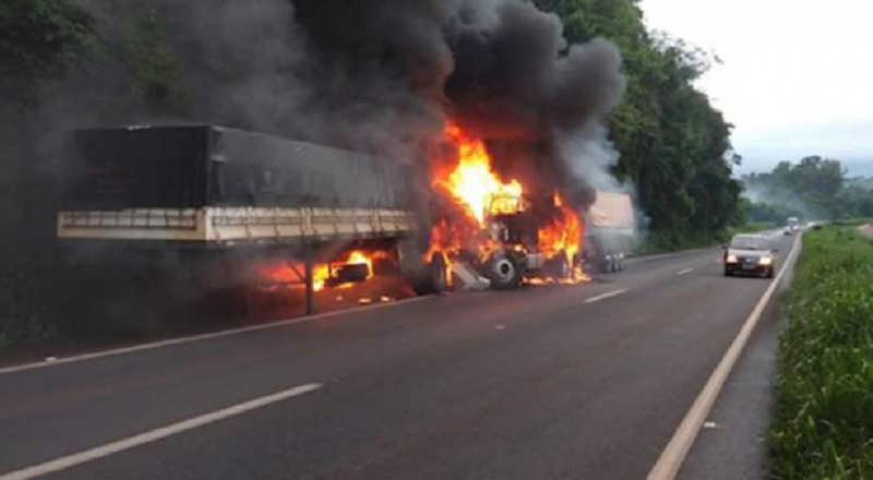 Um caminhoneiro acabou vendo o próprio filho de 23 anos morrer queimado em um acidente no município de Cascavel, no estado do Paraná. Pai e filho viajavam juntos, quando as duas carretas que eles dirigiam acabaram colidindo, a carreta que havia sido comprada recentemente pelo filho acabou pegando fogo e o jovem ficou preso nas ferragens.