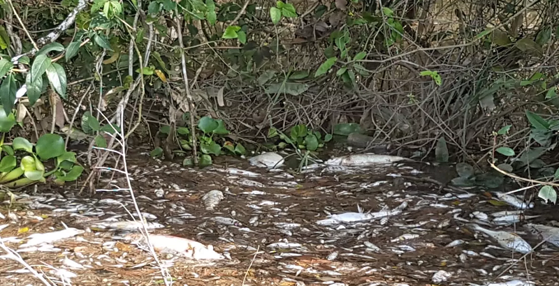 Peixes são encontrados mortos. — Foto: Assessoria Peixes são encontrados mortos.