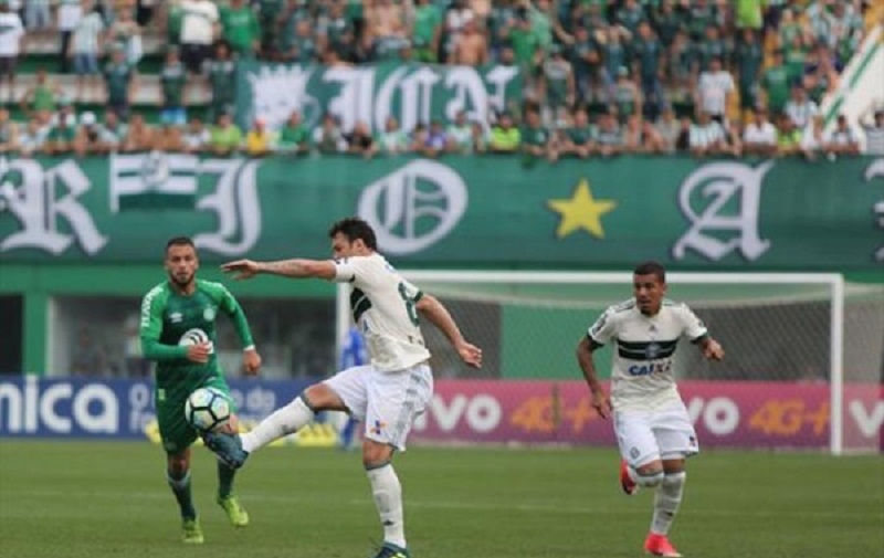 Ao contrário da Chape, o Coritiba aproveitou sua primeira chance no jogo para já sair na frente do placar. Aos 14 minutos, o atacante Kleber recebeu na entrada da área e mandou uma bomba. A bola foi no ângulo, sem nenhuma oportunidade de defesa para Jandrei e o Coxa abriu o marcador com um golaço.