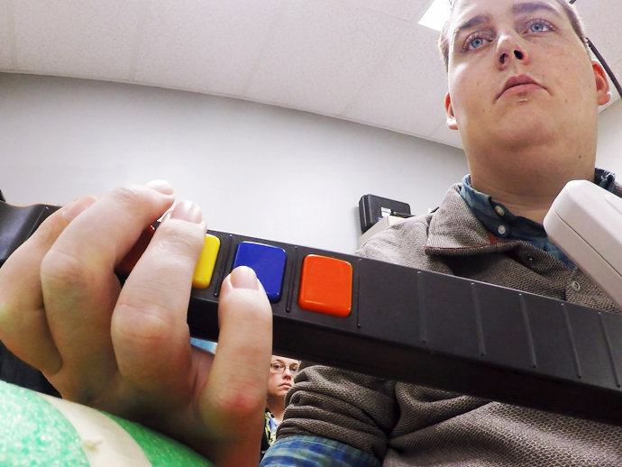O paciente tetraplégico é Ian Burkhart, um americano de 24 anos que perdeu os movimentos das pernas e braços depois de um acidente de mergulho que causou danos na parte superior de sua coluna vertebral.