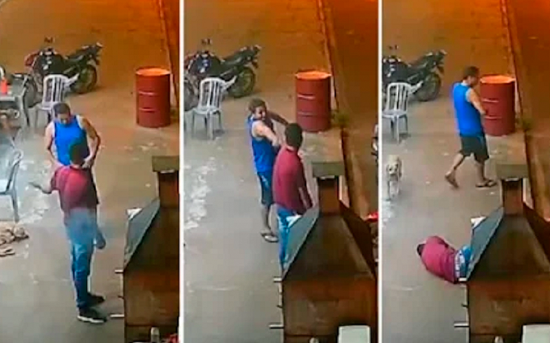 (Foto: Reprodução)- Vídeo mostra quando suspeito levanta de mesa, discute com o trabalhador e, em seguida, dispara contra ele. Autor dos disparos fugiu em uma moto e não foi localizado.
