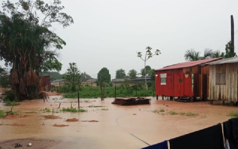 No bairro Toma Alegria-3, imagens mostram o impacto das fortes chuvas. Uma parte do bairro ficou debaixo d’água durante a tarde. Veja: