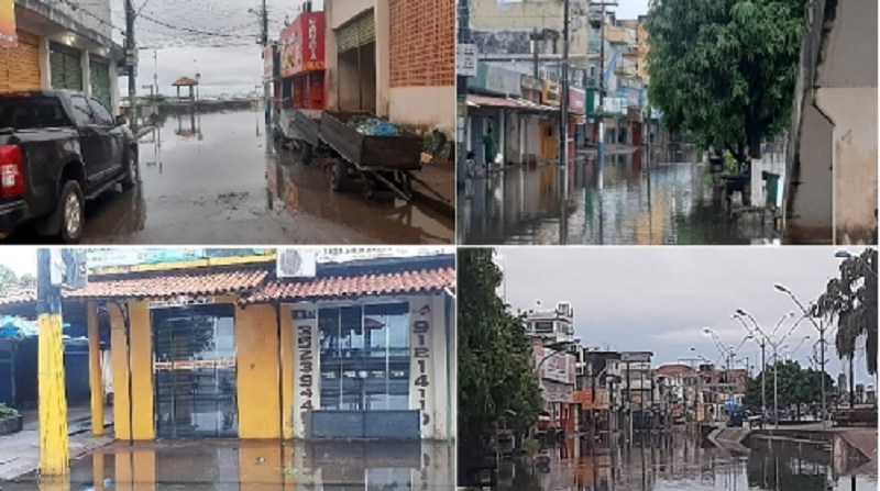 Ruas do comércio também foram invadidas pelas águas. Apesar de as bombas terem sido ativadas não foi possível dar vazão à água.(As informações são do Portal OESTADONET ).