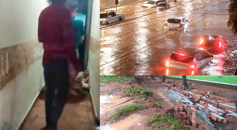 Muros desabaram em diversos locais, dentre eles: Parque da Cidade, AABB e da antiga escola estadual Moraes Sarmento.