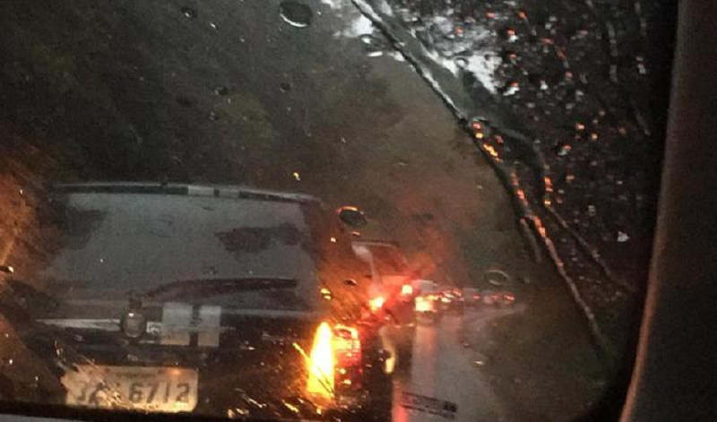 Segundo motoristas, durante uma forte chuva, uma árvore caiu sobre uma carreta, interditando a rodovia federal nos dois sentidos. Ninguém ficou ferido, mas danos materiais foram registrados.