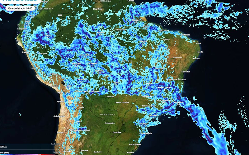 Foto: Reprodução | O canal de umidade continua ativo em grande parte do Brasil, nos últimos dias o sistema causou chuvas intensas e tempestades isoladas em toda a porção central do país. Ao longo da semana, o canal de umidade deve continuar atuando e provocará mais chuvas.