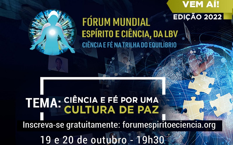 O Fórum Mundial Espírito e Ciência, da LBV, promoverá importante debate nos próximos dias 19 e 20 de outubro, das 19h30 às 21 horas, sobre as relações entre Ciência e Fé para a busca de respostas e caminhos que conduzam ao entendimento e à Paz.