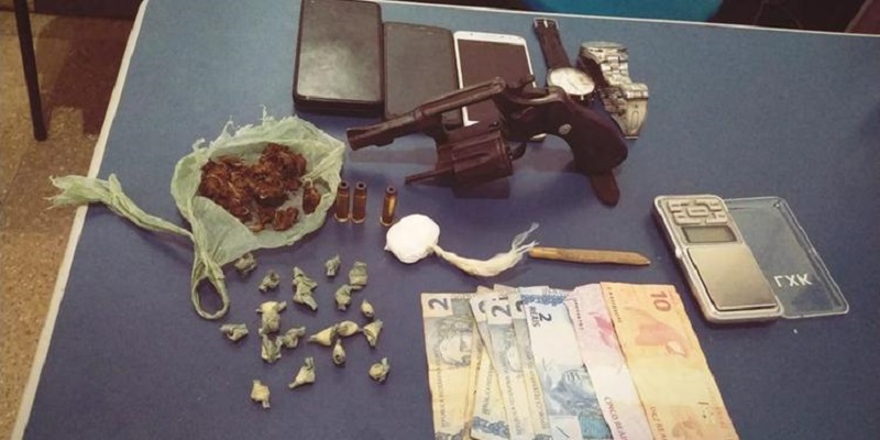 Na residência, foram encontrados entorpecentes como cocaína, maconha e crack, além de mais dois homens e uma mulher que também estavam com drogas na casa.