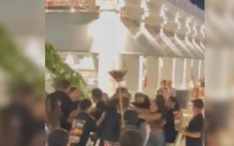 Com a situação fora de controle, funcionários do bar tentaram intervir para evitar que a briga se espalhasse ainda mais. No entanto, a tentativa de conter os ânimos acabou resultando na entrada deles no conflito. Sem apoio imediato de segurança, objetos do próprio local foram usados de forma improvisada na tentativa de separar os envolvidos.